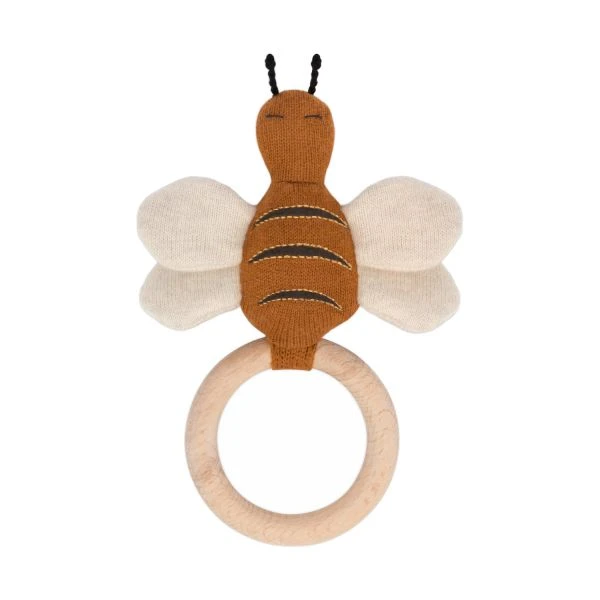 Met de Baby Bello Betty The Bee Rammelaar kan je kindje lekker rammelen en knuffelen. Wanneer je de bij heen en weer beweegt zal het vrolijk rammelen, dit zal je kindje erg interessant vinden. Dankzij de houten ring is de rammelaar gemakkelijk vast te pakken met kleine kinderhandjes. De ring kan ook dienen als bijtring wanneer de tandjes beginnen door te komen. Verder is de schattige rammelaar gemaakt van hoogwaardig materiaal. De collectie van Baby Bello is geïnspireerd door bedreigde diersoorten. Met uw aankoop doneert u aan Stichting No Wildlife Crime.