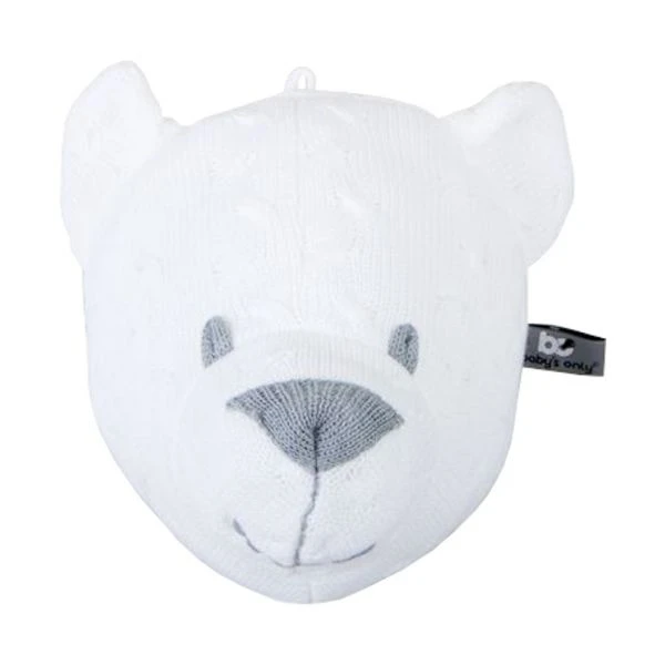 Deze Baby’s Only Berenkop Wit Prachtige en schattige berenkop is gebreid in kabelpatroon van het merk Baby’s Only. Met de handige lus kun je deze beer in de babykamer ophangen, maar hij kan ook als een lekkere zachte knuffel gebruikt worden.