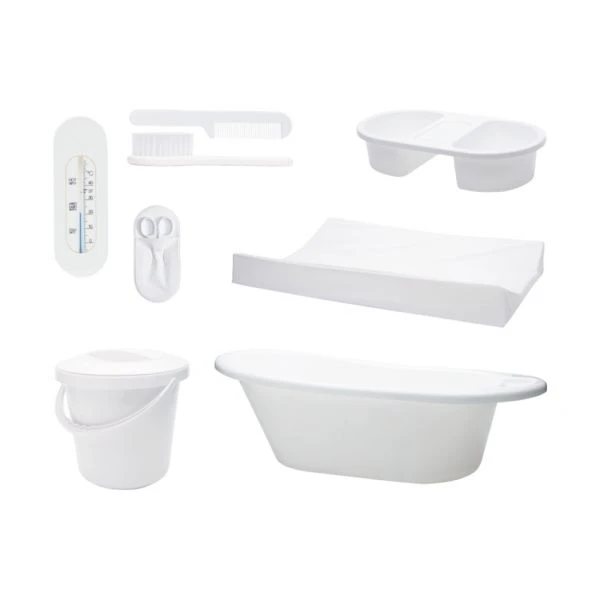 Met deze handige Bébé-Basics Badset 8-delig Wit heb je alles bij de hand om je kindje te wassen en te verschonen. Het waskussen is zacht en comfortabel voor je kindje. De set wordt geleverd inclusief handige verzorgingsproducten zoals een schaartje en een borstel en kam.