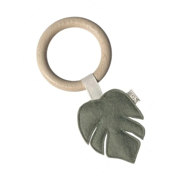 De BEZISA Leaves Bijtring Pistache Green bestaat uit een houten ring met een stoffen blaadje, waarop je kindje kan bijten. Hierdoor zal de pijn bij doorkomende tandjes verzacht worden. Het monsterablad is van binnen voorzien van knisperpapier, waar je kindje mee kan spelen. Door te spelen met en te bijten op het speeltje wordt de ontwikkeling van de fijne motoriek gestimuleerd. De producten van BEZISA zijn bewust gemaakt in neutrale kleuren, zodat je kindje niet overprikkeld wordt.