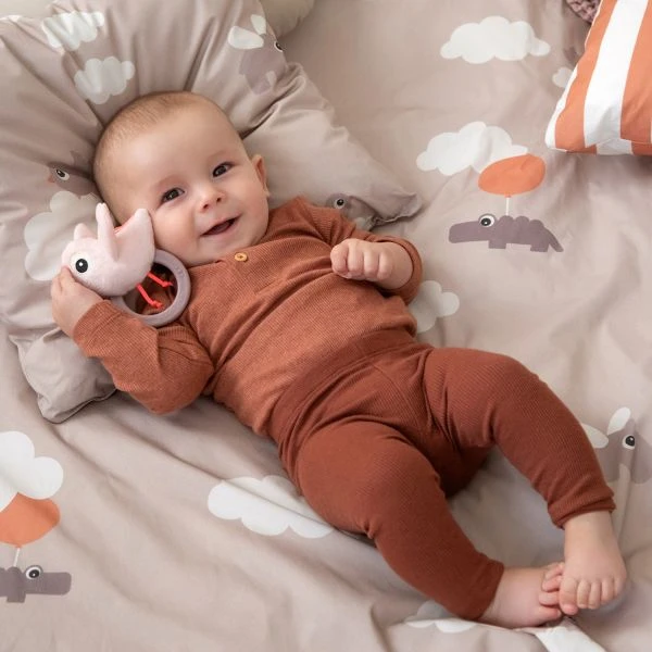 De Done By Deer Birdee Ringrammelaar – Powder is een vrolijk speeltje waar je kindje lekker mee kan knuffelen en spelen. De rammelaar van het merk Done By Deer is gemakkelijk vast te houden voor je kindje. Daarnaast is de ringrammelaar ook voorzien van een ring die perfect als bijtring kan dienen als de tandjes van je kindje doorkomen. Verder is de rammelaar gemaakt van hoogwaardig materiaal en voelt zacht aan.