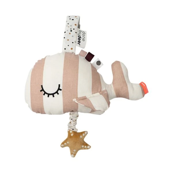 Met dit Done By Deer Muziekdoosje Wally Powder is je kindje nog sneller in dromenland. Het muziekdoosje is gemaakt van hoogwaardig materiaal dat zacht en comfortabel aanvoelt. Wanneer je aan het touwtje trekt hoor je een rustgevend muziekje, zo blijft je kindje rustig liggen. De muziekdoos is eenvoudig te bevestigen aan de wieg, box of ledikant met behulp van een klittenband.