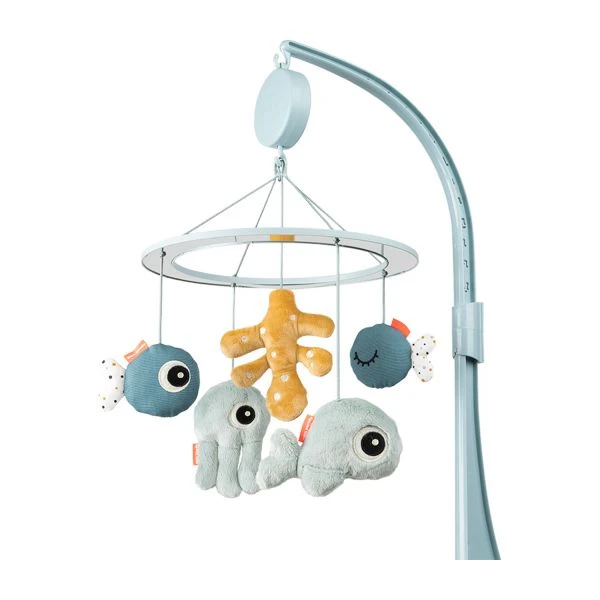 De Done by Deer Sea Friends Muziekmobiel Blue is een leuke muziekmobiel met verschillende knuffeltjes uit de Sea Friends serie. De muziekmobiel bevestig je door middel van een bevestigingsclip aan een ledikant, wieg of box. Het leuke melodietje van de muziekmobiel laat je kindje kennis maken met muziek. Door de mobielfiguurtjes ontwikkelt je kindje motorische vaardigheden zoals, grijpen en kijken.
