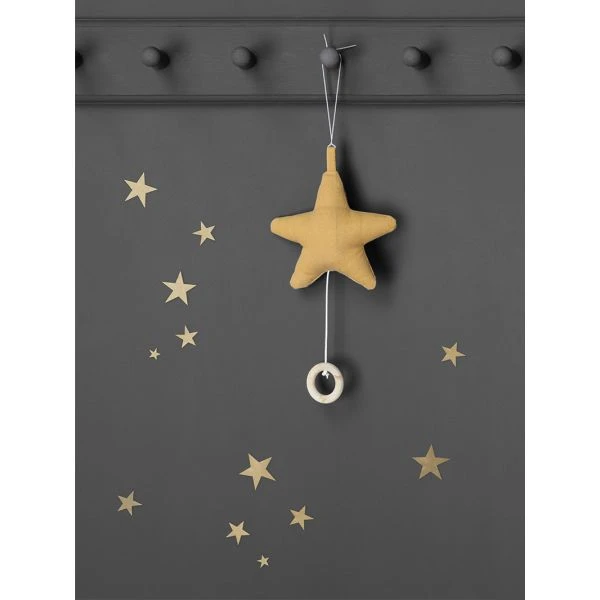 Met de Ferm Living Star Muziekmobiel Mustard zal je kindje heerlijk in slaap vallen. Wanneer je aan het koordje trekt hoor je een rustgevend muziekje. De muziekmobiel staat ook nog eens erg leuk op de baby- of kinderkamer! Hang de muziekmobiel eenvoudig op aan bijvoorbeeld de wieg, ledikant of kast. De muziekmobiel is gemaakt van hoogwaardig materiaal en kan niet gewassen worden in de wasmachine.