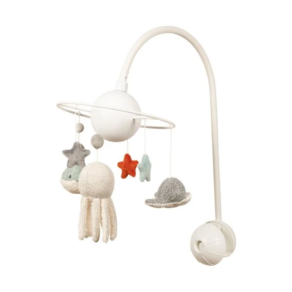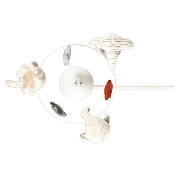 Met de Flow Amsterdam Ocean Muziekmobiel valt je kindje heerlijk ontspannen in slaap. De mobiel is gemakkelijk te bevestigen aan het ledikant of aan de box. Aan de mobiel hangen schattige en vrolijk gekleurde figuurtjes uit de zee die langzaam ronddraaien. Dankzij de vrolijke kleurtjes zal je kindje hier met veel aandacht naar blijven turen. Bovendien beschikt de muziekmobiel over 4 verschillende melodieën die je kunt laten afspelen totdat je kindje in slaap is gevallen. Daarnaast heeft de muziekmobiel een timer waarbij je je kunt kiezen uit 15 en 30 minuten. Je bedient alle opties eenvoudig met de meegeleverde afstandsbediening.