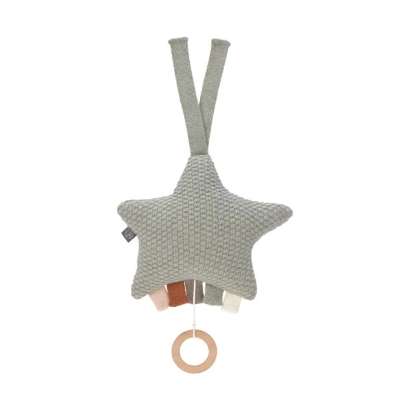 Met de Laessig Star Knitted Muziekmobiel Green zal je kindje heerlijk in slaap vallen. Wanneer je aan het koordje trekt, hoor je een rustgevend muziekje van Brahms’ Lullaby. De muziekmobiel staat ook nog eens erg leuk op de baby- of kinderkamer! Hang de muziekmobiel eenvoudig op aan bijvoorbeeld de wieg, ledikant of kast. De muziekmobiel is gemaakt van hoogwaardig materiaal en kan kan gewassen worden in de wasmachine.