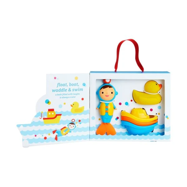 Met de Munchkin Baby’s First Bath Giftset kan je kindje zich heerlijk vermaken in bad! De set bestaat uit een White Hot® Bath Safety badeendje, Scuba™ Swimming badspeeltje en 3 gekleurde bootjes waar je kindje een trein van kan maken. Omdat de speeltjes zijn voorzien van vrolijke kleurtjes zal je kindje worden uitgedaagd om er mee te spelen. De speeltjes worden in een doos geleverd die het extra leuk maakt om het als cadeau te geven. Verder is de giftset gemaakt van hoogwaardig materiaal en veilig voor je kindje om mee te spelen.