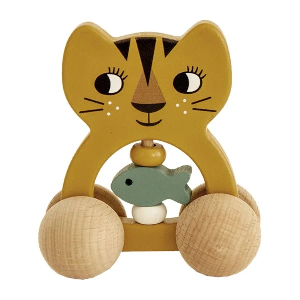 Met de Roommate Tiger Houten Rammelaar kan je kindje lekker rammelen en spelen. De rammelaar is gemakkelijk vast te pakken met kleine kinderhandjes en heeft de vorm van een schattig dier. Wanneer je de rammelaar heen en weer beweegt zal het vrolijk rammelen, dit zal je kindje erg interessant vinden. De houten kraaltjes in de buik van het dier kunnen ronddraaien en zorgen voor het rammel-geluid. Ook is de rammelaar voorzien van wieltjes. Verder is de vrolijke rammelaar gemaakt van hoogwaardig materiaal.