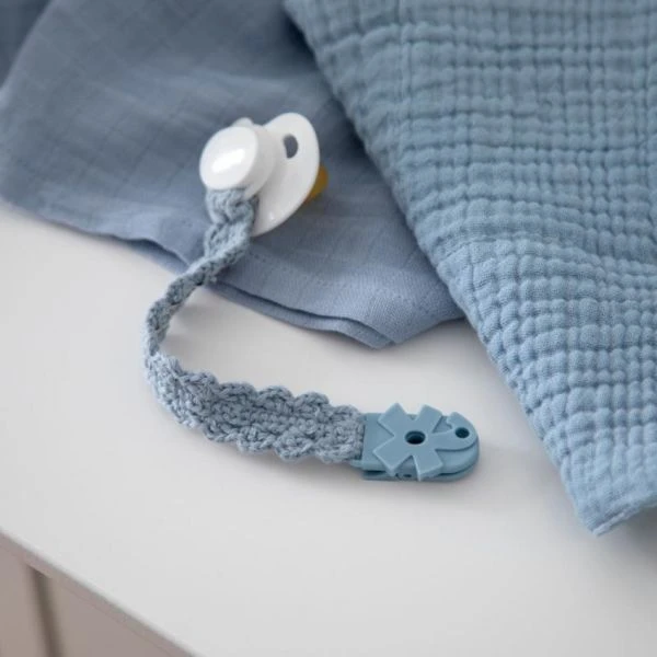 Deze Sebra Speenkoord Powder Blue is de ideale oplossing om de speen van je kindje altijd bij de hand te hebben. Door middel van een klemfunctie kan je de speenkoord eenvoudig aan de kleding van je kindje bevestigen, en aan de andere kant kan je de speen met een lus vastmaken. De ketting is gemaakt van hoogwaardig materiaal en is voorzien van een stijlvolle kleur.