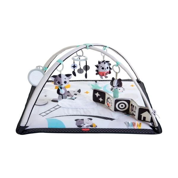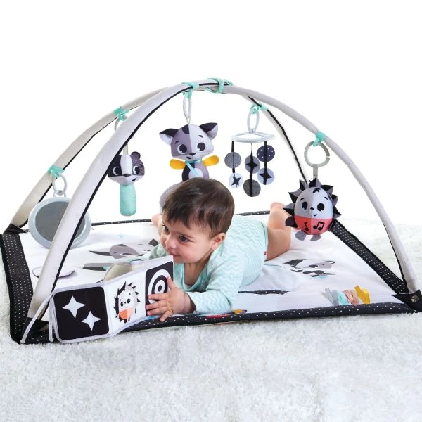 De vrolijke Tiny Love Magical Tales Gymini is ontworpen voor de ontwikkeling van het motoriek, zicht, geluid en de zintuigen. Dankzij alle verschillende activiteiten kan je kindje het speelkleed steeds opnieuw blijven ontdekken. De Gymini is voorzien van een muziekspeeltje, spiegel, boekje, bijtring en rammelende knuffeltjes die je kindje erg interessant zal vinden om mee te spelen. De mat is voorzien van verschillende structuren, labeltjes, lapjes en vrolijke kleurtjes. Met de verstelbare bogen kan je kindje heerlijk op zijn of haar rug of buik spelen. De speelmat is eenvoudig mee te nemen en op te bergen.