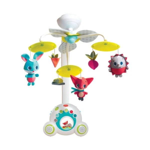 Deze vrolijke muziekmobiel van de serie Tiny Love stimuleert door middel van geluid, kleur en beweging de hand-oogcoördinatie en het gehoor van je kind. De multifunctionele muziekmobiel heeft 18 verschillende klassieke melodieen en een maximale speeltijd van 40 minuten.