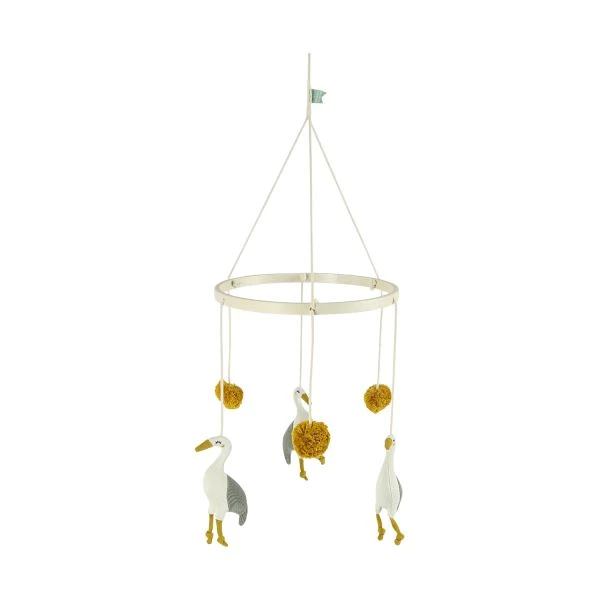 De Trixie Heron Mobiel is een stijlvolle toevoeging op de baby of kinderkamer. De schattige figuurtjes in de vorm van reigertjes en pompons zullen je kindje uren kunnen vermaken. De mobiel en de figuurtjes hebben verschillende kleuren en contrasten wat bijdraagt aan de ontwikkeling van je kindje. De mobiel is eenvoudig te bevestigen aan de wieg, box of ledikant met behulp van een lusje en is gemaakt van hoogwaardig materiaal.