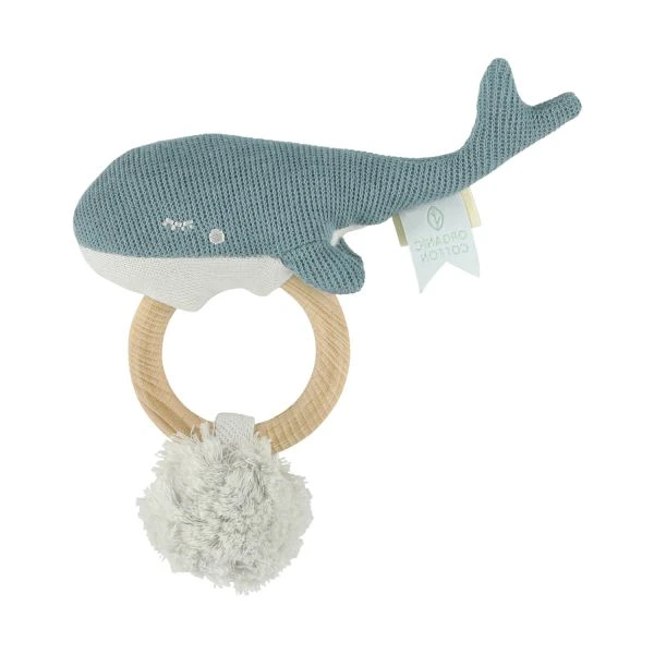De Trixie Whale Bijtring is een vrolijk speeltje waar je kindje heerlijk op kan kauwen en bijten. Het speeltje bestaat uit een houten ring met een knuffeltje in de vorm van een walvis dat je kindje erg interessant zal vinden. Wanneer je kindje op het speeltje kauwt, zal het tandvlees verzachten en de doorkomende tandjes minder pijn doen. Daarnaast daagt het speeltje de zintuigen van je kindje uit door de verschillende kleuren en texturen. Het bijtspeeltje is gemakkelijk vast te houden met kleine kinderhandjes.