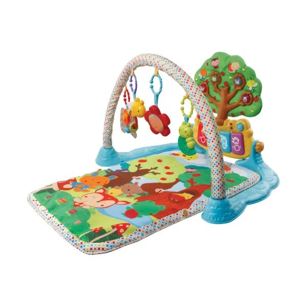 Met deze vrolijke Vtech speelmat vermaakt je kindje zich uren. Laat je kindje kennis maken met verschillende kleuren, vormen en dieren. De speelmat heeft vrolijke kleuren en ligt lekker zacht. Aan de boog zitten 4 speeltjes die ook eenvoudig aan een autostoeltje of kinderwagen bevestigd kunnen worden. Op het paneel zitten verschillende toetsen zodat je kindje kan genieten van vrolijke melodietjes en liedjes. De muziek schakelt na een bepaalde tijd automatisch uit. De speelmat, boog met speeltjes en paneel zijn gemaakt van hoogwaardig materiaal. De speelmat kan eenvoudig losgemaakt worden en is geschikt voor de wasmachine.